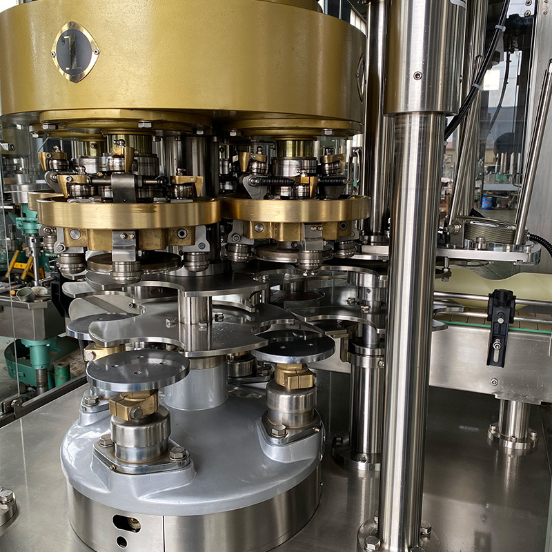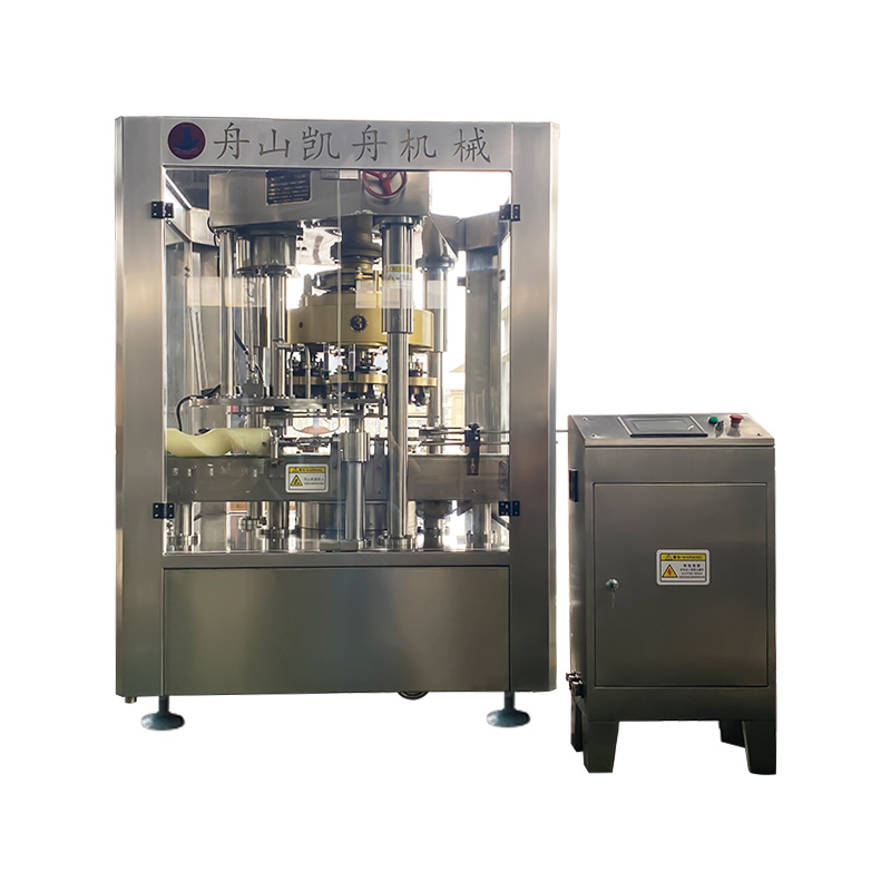 本機裝置有自動供罐機構(gòu),及一個“無罐一無蓋”聯(lián)動機構(gòu),和一個同步的分蓋機構(gòu),當本機與灌醬(汁)機聯(lián)機使用時,本機還有一套驅(qū)動灌醬(汁)機的驅(qū)動系統(tǒng)。本機生產(chǎn)率高,對封醬,汁及蔬菜類罐頭尤為適用。